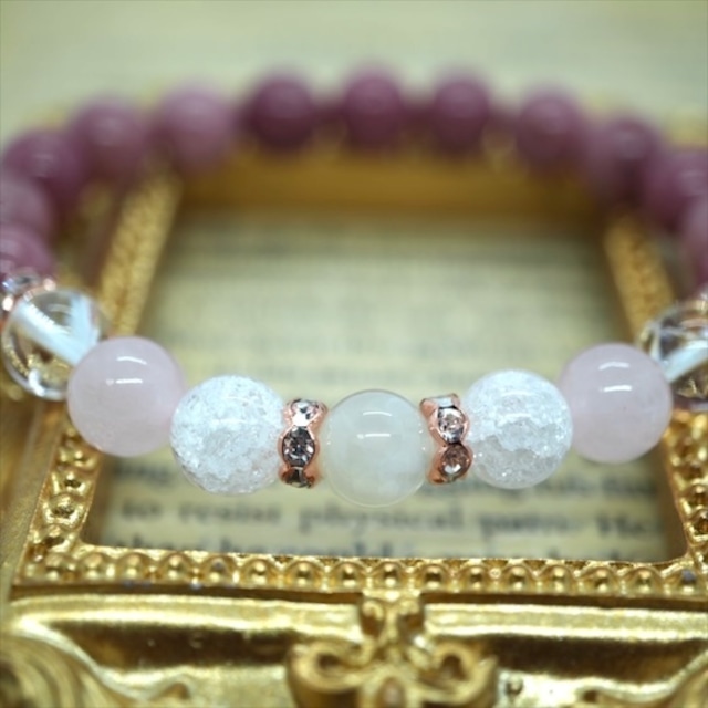 【pink】ハウライト・ムーンストーン・水晶・ローズクォーツなどを使ったお守りブレスレット/天然石 恋愛・平穏・浄化 新登場!心の穏やかさと美しさを引き出すお守りブレスレットが誕生しました!ハウライト、ムーンストーン、ローズクォーツ、さらには水晶を組み合わせたこのブレスレットは、優しい色合いと共にポジティブなエネルギーを届けてくれます。あなたの日常に癒しとバランスをもたらしてくれることでしょう…。 「使用した天然石」 ↓ ・ムーンストーン…8mm ・水晶…8mm ・ローズクオーツ…8mm ・ハウライト…8mm サイズは基本的に15cmでお作りしています。ご注文確定後、順次お作りいたしますので、少々お待ちいただけると嬉しいです。(仕上がりまで7日~10日ほど) サイズのご要望があればご記入ください。2㎝以上アップのサイズ変更は別途 300円の「サイズ変更」を一緒にカートへ入れてご注文ください。 (増減はなるべくクリスタルで対応いたします)。 金属アレルギーの方はロンデルを「クリスタルボタンロンデル」などで対応できますので、ぜひお申しつけください。 このブレスレットで、あなたの心を癒し、穏やかな日々をお過ごしください!