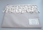 綿ローンの優しい触り心地の布地とふんわりつぶつぶレースで大人可愛いポーチをお作りしました。中には芯を張り裏地もお付けしています。ファスナー部分には天然石でお作りしたチャームを付けました。