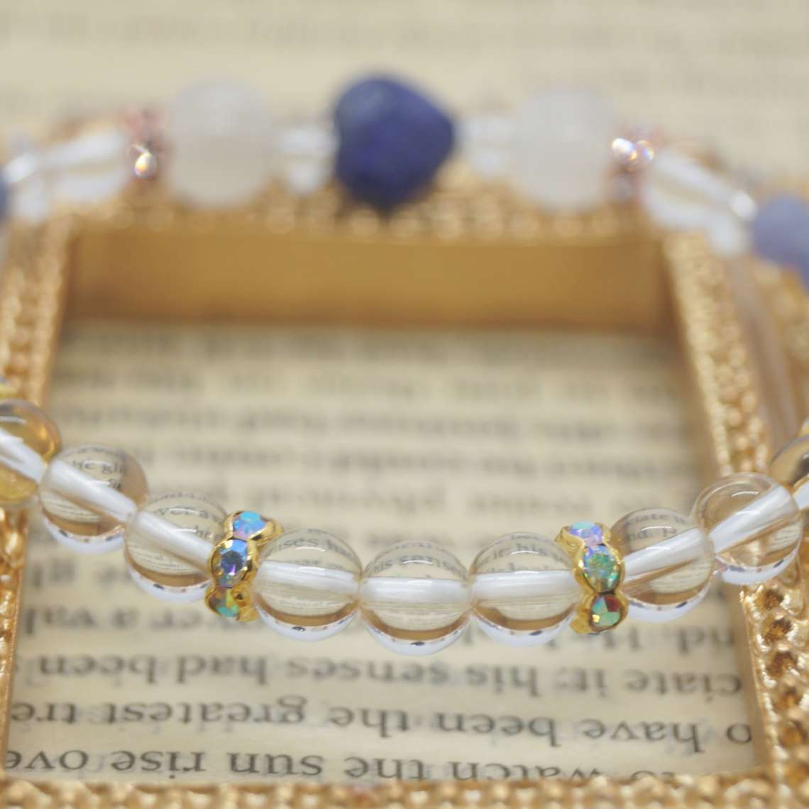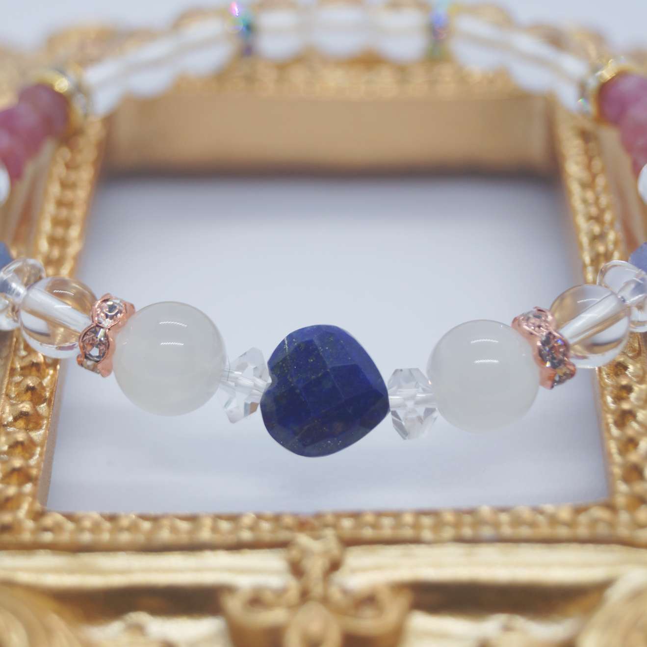 を使用した可愛いデザインのブレスレットできました。個人的にハートのラピスラズリが可愛いとお気に入りです。